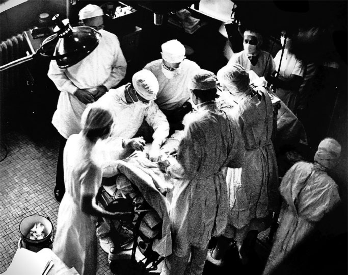 Рисунок 2.4: А. Первая процедура шунтирования, проведенная Блэлоком. Томас стоит прямо у него за спиной.