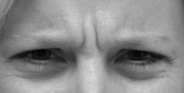 Непосредственно над бровями может быть маленькая морщина. Она выглядит по-разному, бывает отчетливей в разных зонах. Справа – зона Солнца, слева – Луны.