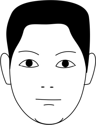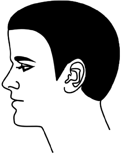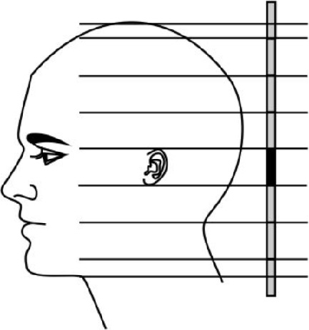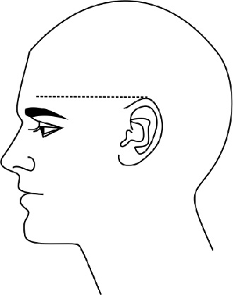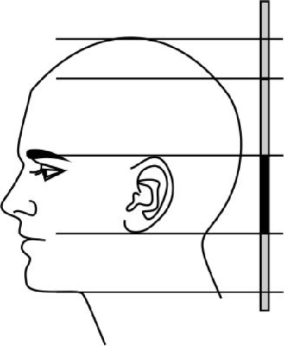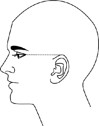 Высота ушных раковинВысоту расположения ушных раковин нужно определять относительно уровня бровей.
