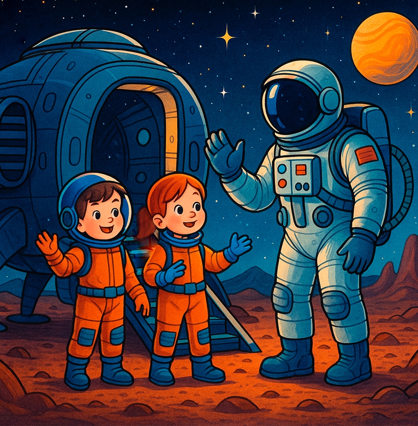 Дима и Катя ровесники и дружат давно. Они живут по соседству и ходят в школу в один класс. Однажды на уроке «Разговоры о важном» была тема про космос. К ним на урок даже пригласили настоящего космонавта! Детям так понравились истории гостя, что потом весь день они только и говорили про космос и мечтали там побывать. Тем более что Дима с детского сада мечтал стать космонавтом, а Катя очень любила ходить в планетарий.