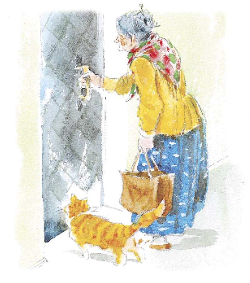 Бабушка поставила сумку у двери, сняла платок, достала завёрнутый в серебристую фольгу яблочный пирог, усадила ребят за стол и отрезала каждому по большому ломтю.
