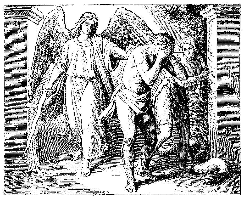– Итак, вы не послушались Меня, съели запрещённый плод, идите же прочь из рая, трудитесь и в поте лица добывайте пропитание. До сих пор вы не знали ни болезней, ни смерти, теперь же вы будете болеть и, наконец, умрёте.
