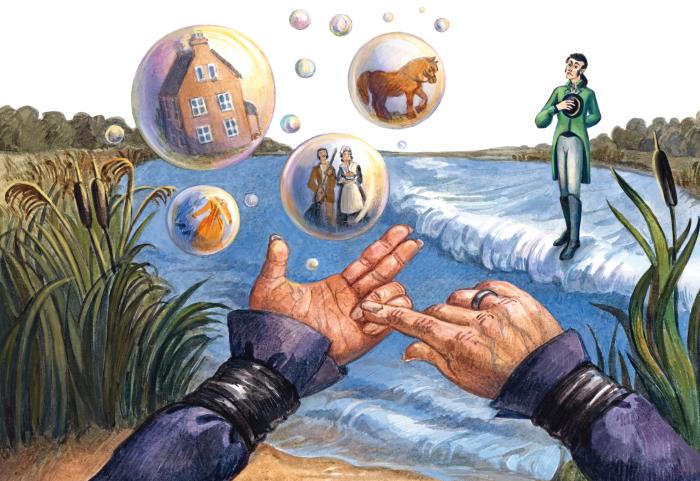 Получилось, однако, что ей не пришлось идти до самого Ипсвича: по пути она увидела озеро, а на берегу рыбака, который только что забросил в озеро сеть. Старушка села около него и стала ждать. Рыбак докурил свою трубочку и стал тянуть сеть, но, вытащив, достал из неё только одну маленькую серебристую рыбку.