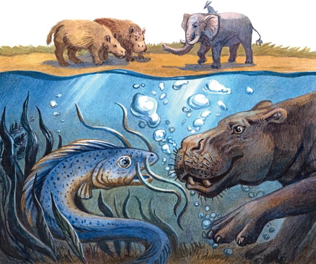 РЫБА. Мне непонятно, почему у всех животных, живущих на суше, есть шерсть, а у вас, бегемотов, её нет?