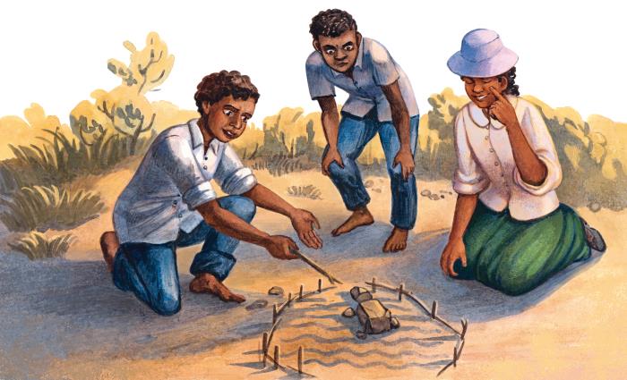 Они принялись за дело и работали весь день. Они построили забор, а вечером пошли к себе в лагерь и по пути пели песню: