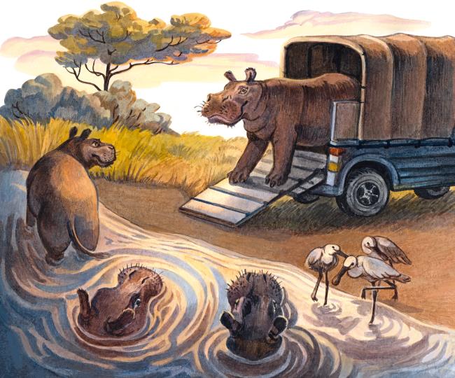 И все поняли, что она права. Она права, потому что в заповеднике Микуми есть «пруд бегемотов». И ещё права потому, что в заповеднике хорошо живётся не только бегемотам, но и слонам, и львам, и лысому марабу, и даже злой слюнявой гиене…