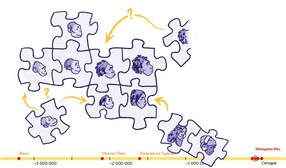 Как бы не так! Со временем археологи нашли подтверждения тому, что эта теория не соответствует действительности. Например, выяснилось, что на Земле существовало одновременно несколько видов людей. История человечества очень запутанная. Это история миллиардов людей, сотен тысяч поколений, обитавших в самых разных уголках планеты. Словно огромный пазл, она состоит из отдельных деталей – археологических находок. Каждая из них дополняет картину, делает её ярче и насыщеннее. Поэтому часто учёным приходится менять свой взгляд на теорию эволюции.