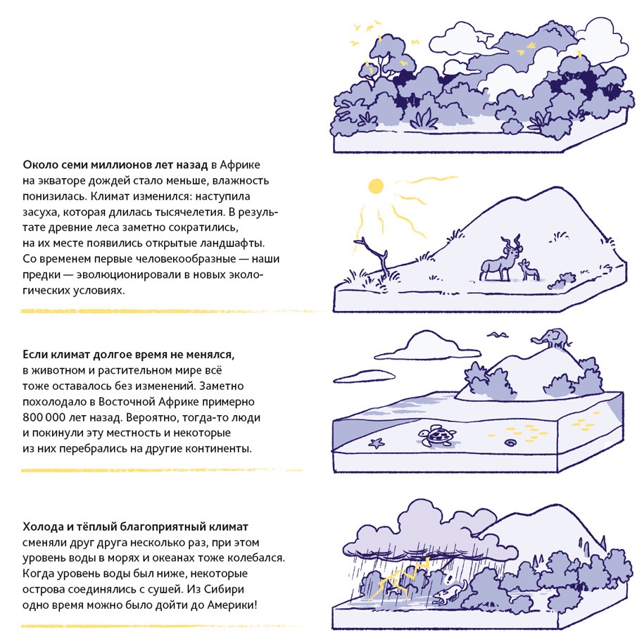 Изменение климата: на ум сразу приходит глобальное потепление, о котором сейчас так много говорят. Но изменение климата на Земле – отнюдь не новость. Нередко оно становилось причиной нового витка эволюции. Перемена климата значительно повлияла и на появление людей.