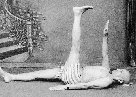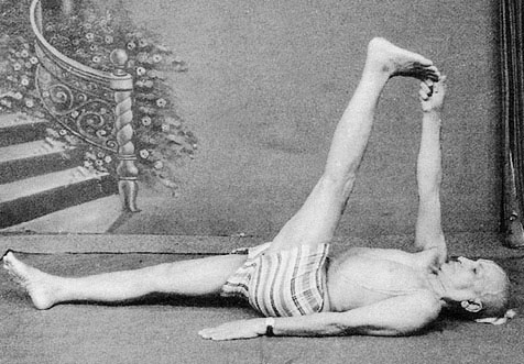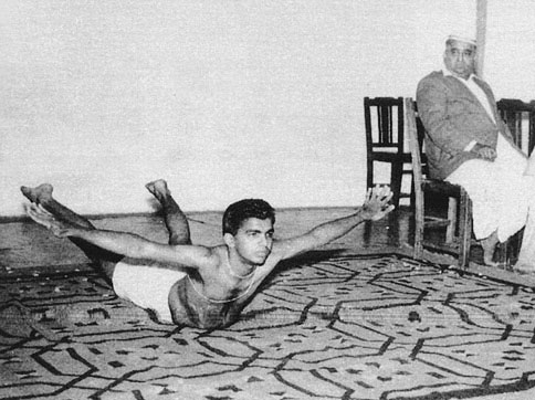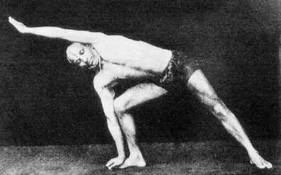 Кришнамачарья в возрасте 46 лет демонстрирует уттхита-паршва-конасану.