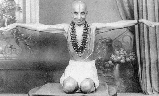 Кришнамачарья демонстрирует вариант ваджрасаны.