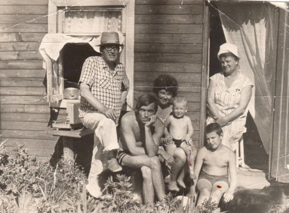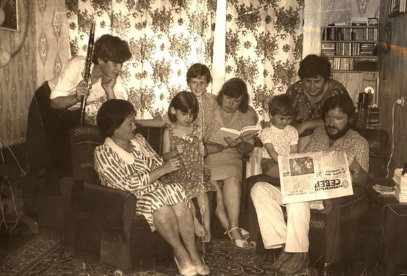 Дома у Щекиных – Петр Белякин, Маргарита Гринько с Дарьей Щекиной. Степан Белякин, Тамара Белякина. Сергей Щекин с Никитой Щекиным, за ними Галина Щекина. 1987