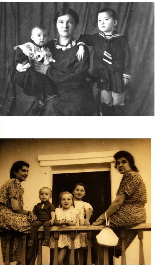 Вверху – Клавдия Щекина, дети Тамара и Маргарита. Внизу – дети Сергей, Тамара, Маргарита Щекины на балконе в окружении своих теток