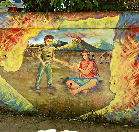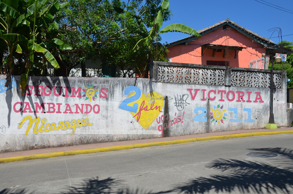 Вдоль всего пути по обе стороны красовались уличные рисунки, но лишь немногие из них можно было назвать красивыми. Во-первых: тематика рисунков в основном революционно-военная, патриотическая, с призывами к лучшей жизни, а во-вторых: качество исполнения здесь уступало всем остальным граффити в центральной Америке, разве что панамские рисунки можно было поставить в один ряд с никарагуанскими. Профессионализма было мало, да и никто их не поддерживал в наилучшем виде. Но глядя на эту уличную роспись можно чётко прочувствовать дух никарагуанцев, их неравнодушие к политической ситуации в государстве.