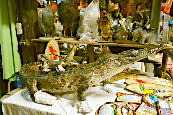 На рынок в Масайю умельцы со всей страны свозят свои изделия, изготовленные собственными руками. Тут ничего не изменилось: всё та же суета и шум, стоянки транспорта вокруг, музыка из каждой лавки, теснота и сумрак внутри. Чего здесь только не было! Гамаки, которые кружевной бахромой свисали откуда-то сверху, всегда меня восхищали, и теперь я снова встала, рассматривая работы мастеров. Чучела крокодилов, игуан, птиц и лягушек были свободно выставлены на показ.