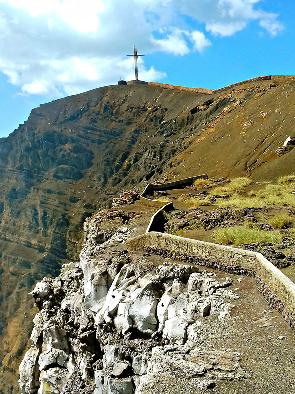 Деревянный крест на высшей точке склона, как всегда одиноко возвышался на фоне синего неба и тропа к нему была закрыта. Обрушения тропы были налицо. Нынешний крест является памятником тому кресту, который поставили испанцы в 16-ом веке, что бы унять гнев демона из преисподней. Уж не знаю, был ли в этом смысл, но крест всегда стоит здесь с тех давних времён конкисты.
