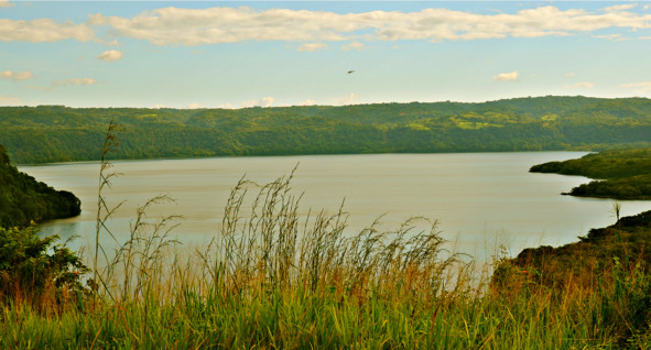 Уехать в Сан Маркос отсюда было сложно – весь транспорт идёт в Масайю, а уже оттуда надо брать маршрут в мой город. Но пока было время, прошла пешком недолго и, через служебную территорию неизвестного мне офиса, попала к лагуне Масайя в чёрных, лавовых берегах. Высокая трава вокруг лагуны настораживала. Кому, как не мне знать о разных там пресмыкающихся, выползающих погреться на горячую лаву берегов? На помощь позвала охранника – тот, взяв большую палку, раздвигал траву и вёл меня через заросли. Да, Лагуна Масайя – это не Лагуна де Апойо, где для посетителей все блага, здесь нет троп и конных прогулок тут нет. Здесь всё дико и недоступно в зелёной поросли трав и кустов.