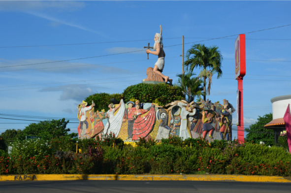 Насмотрелась на лагуну со всех сторон, а потом долго стояла на автобусной остановке напротив скульптурного ансамбля на тему индейских народов в ожидании транспорта в Сан Маркос. Сильно не переживала, во всю фотографируя монумент коренным индейцам Никарагуа, а когда поняла, что отсюда могу не уехать совсем, то поспешила последним автобусом доехать до Масайи.