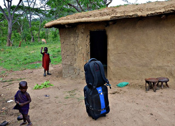Пять глинобитных домов расположились на приличном расстоянии друг от друга. В стороне от них загоны для животных. Навстречу нам вышел глава семейства лет 38-ми. Мне показалось, что я его напугала. Взгляд мужчины выражал недоумение и удивление, но Мануэль всё разъяснил и огласил причину моего приезда. А причина была одна, любопытство. Долго не договаривались, и масаи взяв мой чемодан, понёс к дому. Чёрные, крепкие бёдра сверкали в разрезах платья, как и мачете, закреплённое на поясе. Лёгкая, пружинящая походка привлекала взгляд, во всём чувствовалась уверенность хозяина семьи.