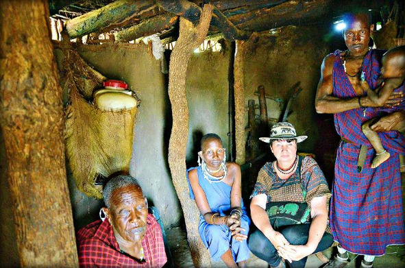 Через несколько минут появилась семейная чета, родители Монти – отец Аргелеси и мама Рахема. Старик 70-ти лет оказался слепым. Пока Аргелеси был молод, все заботы о большой семье ложились на его плечи. Сейчас старик «отошёл от дел», доверив пост главы сыну. Мама Рахема 50-ти лет, оказалась скромной женщиной. Женщина получила в подарок от меня коробку конфет и сразу поспешила спрятать в своём доме. Супруги жили в мазанке неподалёку. Их костюм и внешность отвечали всем правилам масаи – красная клетчатая одежда на папе и синие накидки на маме. Бисерные серьги оттягивали их уши, браслеты на руках и ногах были немногочисленны, ожерелья на шее не были вызывающими, а головы гладко выбриты. Все украшения масаи делают сами. Для них очень важно себя украшать. Даже дети, только родившись, уже красуются в плетёных поясах, браслетах и ожерельях.