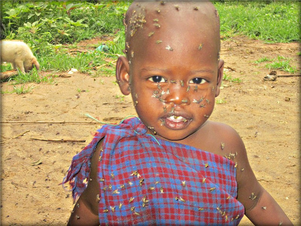 Мухи донимали именно детей, которые настолько к ним привыкли, что даже не отмахивались. Мухи лезли в рот, глаза и уши, при этом и взрослые и дети были совершенно спокойны. Масаи говорят, что мухи с деревьев, но ни как не от коров, ведь загоны для животных находятся в приличном расстоянии от домов, а потому насекомые вреда не причиняют, только укрепляют нервы. Я подивилась такому заявлению, но от детей держалась подальше, всегда имея при себе густую зелёную ветку. Изоляция давалась сложно, дети меня просто преследовали. В любых моих делах дети были рядом, трогали руки, волосы, при этом пускали на меня мух. Я, как могла, объяснила им, что ко мне надо подходить с веткой, постоянно обмахивая ею себя и меня заодно, иначе на конфеты могут не рассчитывать.