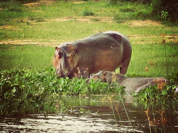По берегу гуляли мамаши с бегемотиками, животные плотно устилали прибрежные воды своими телами, зевая время от времени и ухая.