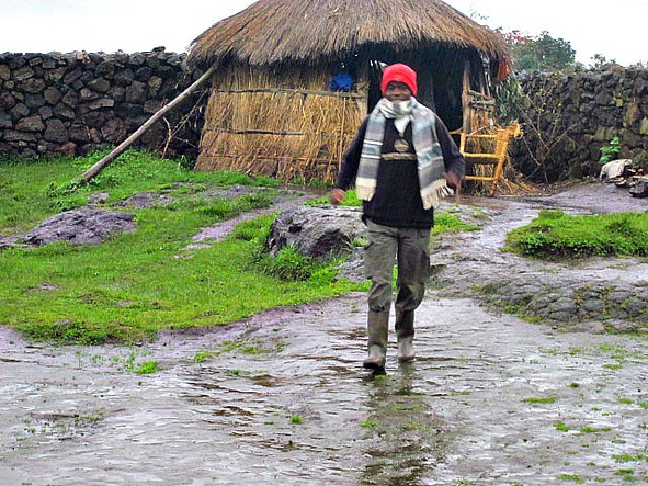 Район нашего следования назывался Virunga, что и в Уганде, только сейчас мы находились по другую сторону вулканов на стороне Руанды. Автобус тяжело шёл в горы, начался ливень. Дождевая завеса мгновенно скрыла всю красоту пейзажа, дворники на стёклах заливало потоками, водитель вёл машину по наитию. Погода в горах отличается от погоды у предгорья. Здесь уже сезон дождей в разгаре, а там, внизу, всё только начинается постепенно набирая обороты.