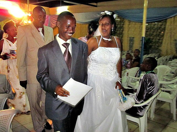 Нам принесли напитки: пиво, соки-воды, при этом радушно улыбались. Было непривычно от бурундийских улыбок в наш адрес и мы невольно отвечали взаимностью. Начались поздравления молодожёнов. Народ цепочкой потянулся к сцене. Было приятно от тёплого приёма и выпитого пива, а потому остаться в стороне от всеобщих поздравлений показалось не совсем приличным.