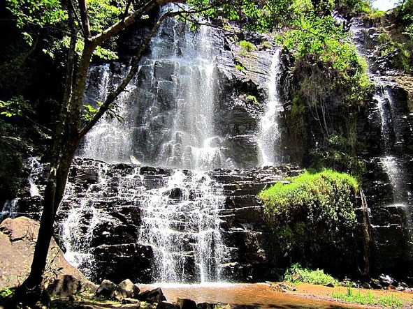Каскад водопадов Чута де ля Кагера состоит из четырёх ступеней очень похожих между собой. Ступени находятся на разных горных уровнях друг над другом. Общая высота каскада 500 метров, но ближайшими от нас были только два водопада. Первый увиденный нами поток оказался второй ступенью снизу. За посещение заповедника взимается плата, потом навязывается проводник за отдельные деньги, а граждане страны гуляют по национальному парку бесплатно.