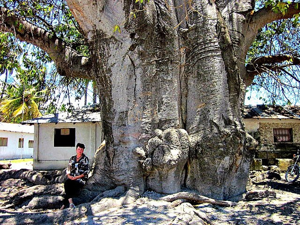 Молодой человек пригласил нас в машину. Он быстро и не задумываясь развернулся, чтобы подвезти нас к самому дереву с гигантским стволом в обхвате, при этом гордо сказал, что это «бао». Таким был первый увиденный нами баобаб!