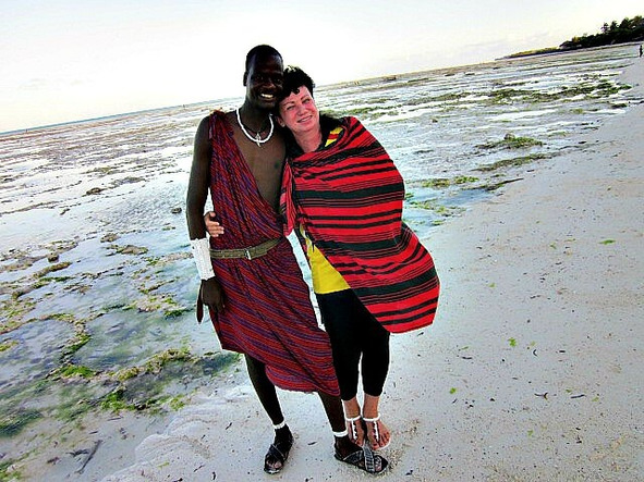 В последний день нашего отдыха на Занзибаре намечался общий ужин. Вечером пришли масаи попрощаться. Было сказано много тёплых слов, приглашение посетить их деревню оставалось в силе, дело за малым, всего лишь изыскать время и возможности, чтобы ещё раз прилететь в Африку.) Масаи Якобо решил подарить мне накидку со своего плеча, но я согласилась только в ней сфотографироваться. Масаи каким-то чудом всегда появлялись внезапно, они привносили пикантность в наш занзибарский отдых. Парни гуляли с нами повсюду, шутили, как и мы, думали так же. В какой-то момент мне показалось, что это не они убивают льва вступая во взрослую жизнь и не они пьют кровь животных. Это кто-то другой добывает огонь натиранием палочек, кто-то совсем далёкий кочует со своими стадами по саванне. А наши масаи простые и понятные, открытые и душевные, какая уж здесь воинственность? И неважно, что у них мачете в ножнах, бусы с браслетами, уши дырявые и сандалии «колёсные». Их английский язык более глубок, чем у занзибарцев, они пользуются интернетом и телефонами, имеют представление о мировой политике и о мире, легко контактируют и не конфликтные, а свой фольклор и традиционный уклад жизни беречь надо да хранить – уж так завещано старейшинами. Простились мы тепло и навсегда.