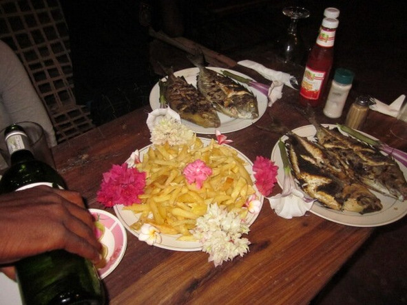 Возвращались в свой бунгало с лёгкой грустинкой. Завтра заканчивалось наше пребывание на Занзибаре и сегодня мы устраивали прощальный ужин на террасе. Для Амороссо было дано задание приобрести всё необходимое к ужину. Куплена рыба под №12, а к ней ещё много чего и, конечно же, белое вино. Готовил Амороссо замечательно, все свои блюда приносил нам на тестирование в течение недели, оттого ему полное доверие.