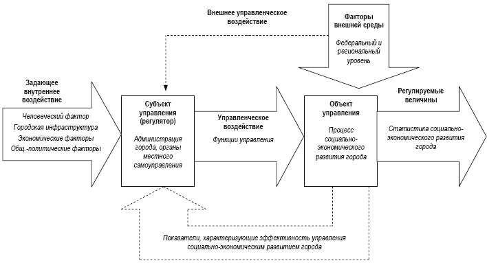 Влияние совокупности факторов обусловливает противоречивый характер изменений в социально-экономической сфере города: имеют место тенденции как благоприятные с точки зрения достижения главной цели социально-экономического развития, так и неблагоприятные. Первые представляют собой развитие (прогресс) отношений в социально-экономической сфере, вторые – их регресс. Общество заинтересовано в том, чтобы минимизировать неблагоприятные факторы и обеспечить прогрессивные изменения в социально-экономической сфере города, т. е. управлять развитием, которое выступает в качестве объекта управления.