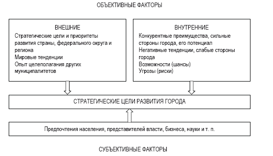 Основным условием, которое необходимо соблюдать при выборе целей и приоритетов развития, должно стать следующее: цель города должна вытекать из целей развития социально-экономических систем более высокого уровня – региона, страны в целом – и не противоречить им.