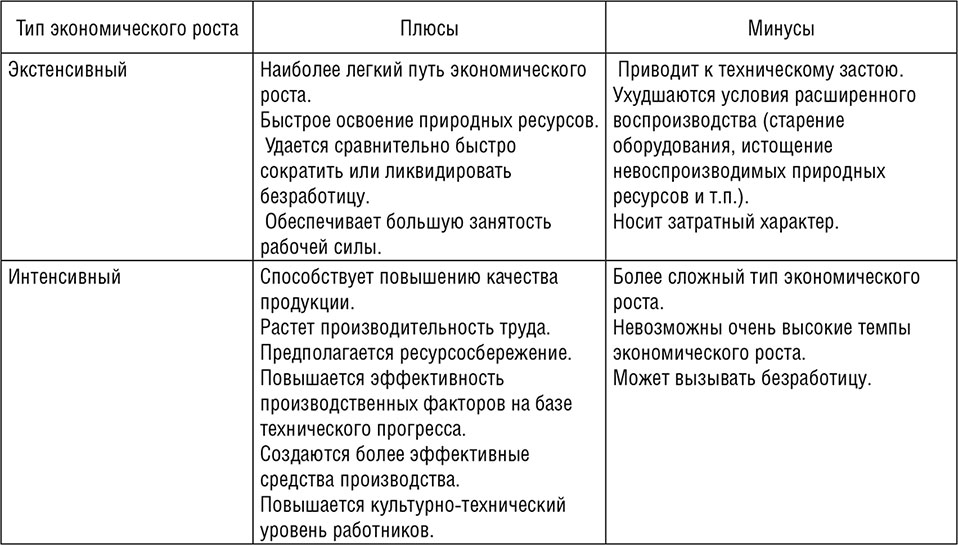 Таблица 1.2. Положительные и отрицательные стороны типов экономического роста