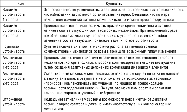 Итак, исходя из признаков системы, можно сказать, что основа устойчивости заложена внутри самой системы. Условием обладания устойчивостью к внешним воздействиям являются внутренние свойства системы. Устойчивость подразумевает выполнение системой функций в условиях внутренних изменений параметров и дестабилизирующих воздействий внешней среды.