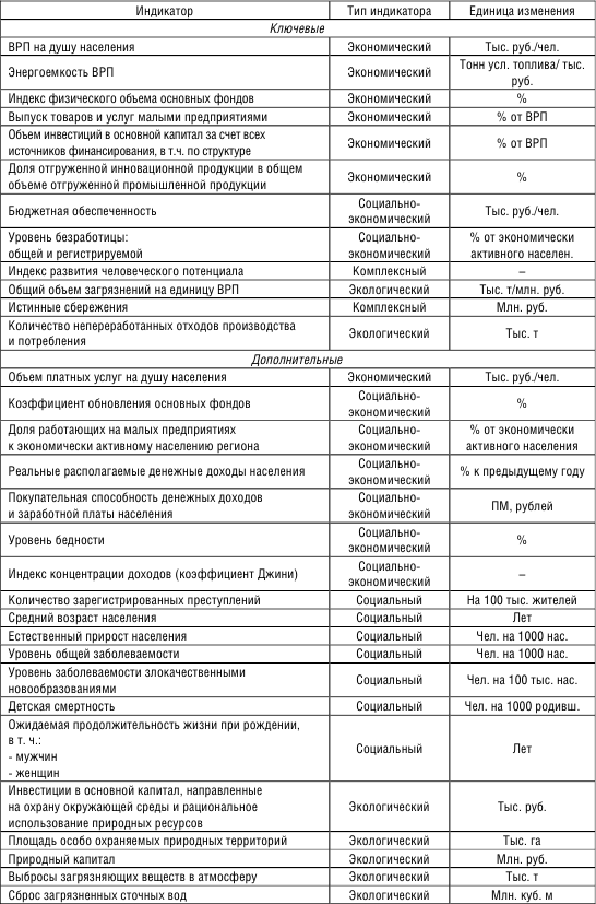 Таблица 1.6. Индикаторы устойчивого развития региона