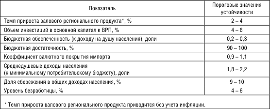 Таблица 1.7. Индикаторы устойчивости региональных экономических систем