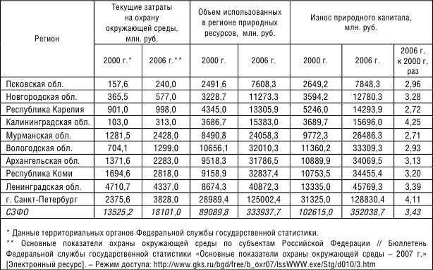 Таблица 2.11. Показатели износа природного капитала по субъектам Северо-Западного федерального округа в 2000 и 2006 гг.