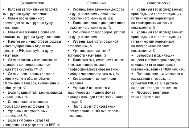 • система показателей должна охватывать все составляющие региональной системы: экономическую, социальную и экологическую;