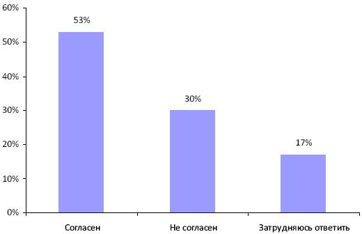 Мировой финансовый кризис, по мнению 53% экспертов, привел к сокращению взаимодействия градообразующих предприятий с иностранными компаниями. Однако 30% экспертов не согласны с этим утверждением (рис. 5).