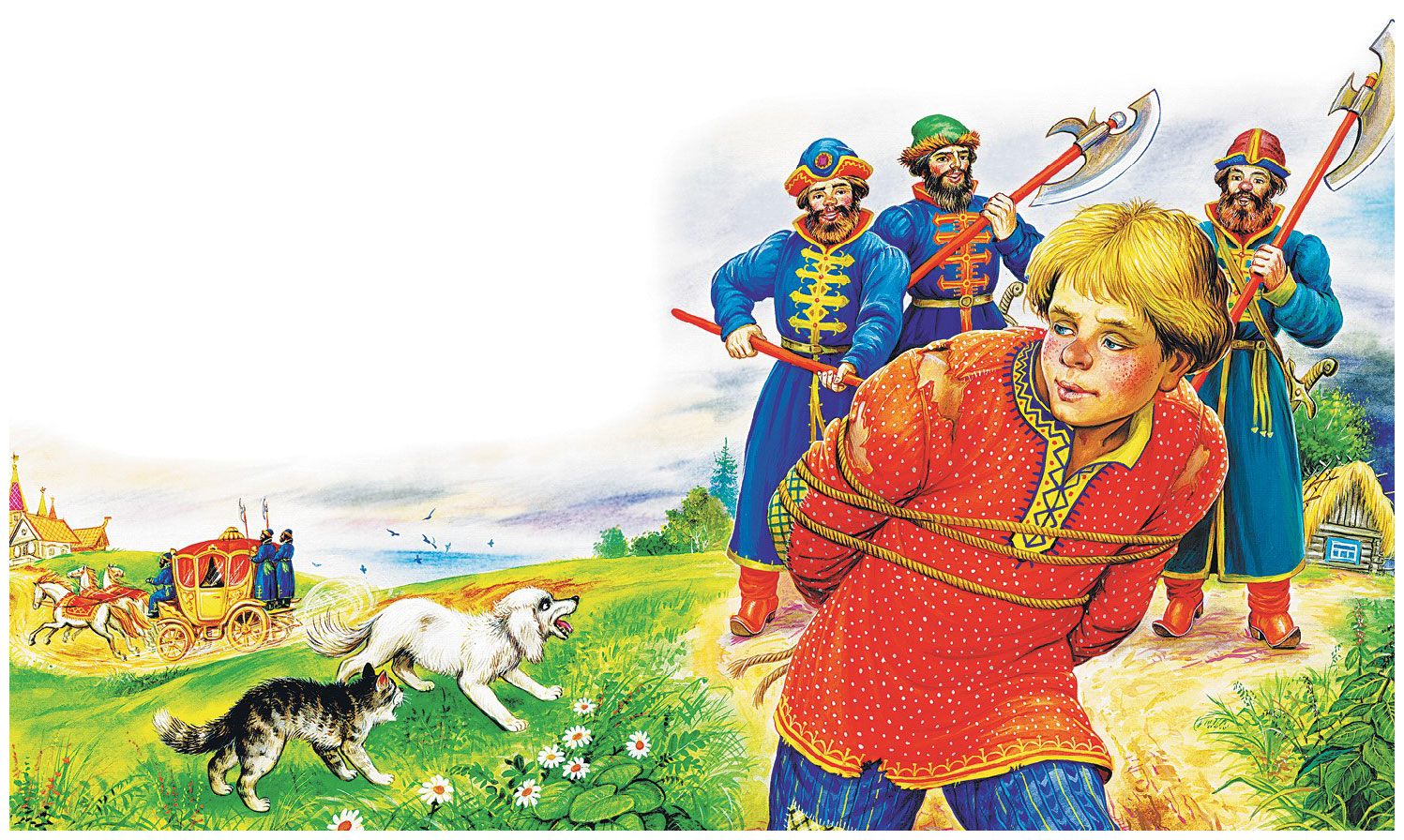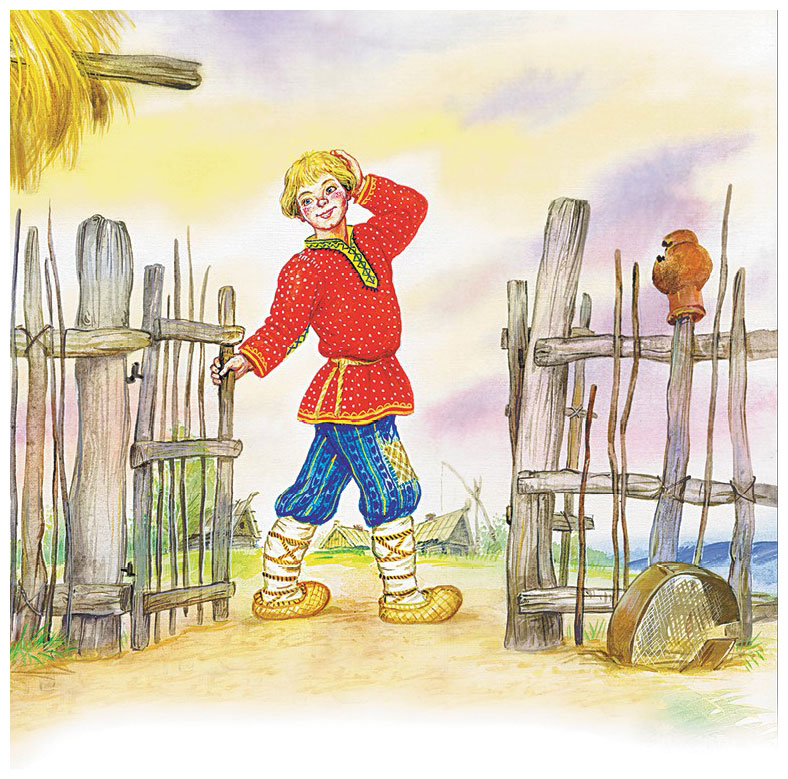 Вот уже перед ними последняя река, – а за рекою видна ихняя деревня, там и Семёнова изба. Собака говорит кошке: