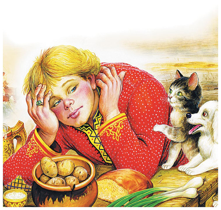 С тех пор они стали жить сытно. Половину муки Семён продал и купил на все деньги говядины, так у них и кошка с собакой каждый день котлеты ели, шерсть у них лосниться стала.