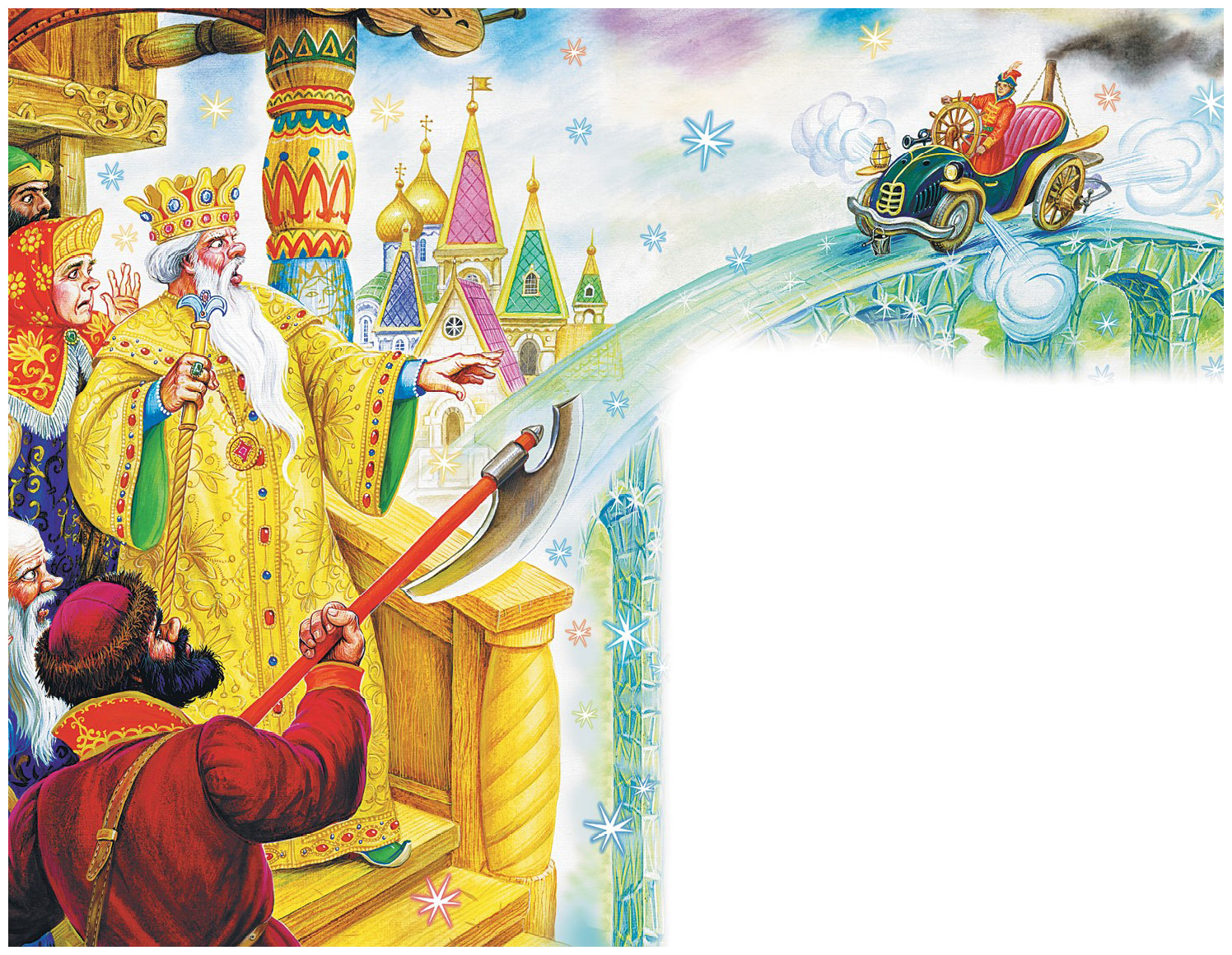 – Служите мне вот чем. Возьмите эти хоромы да и мост хрустальный и перенесите их туда, где живёт Молодец из Молодцов.