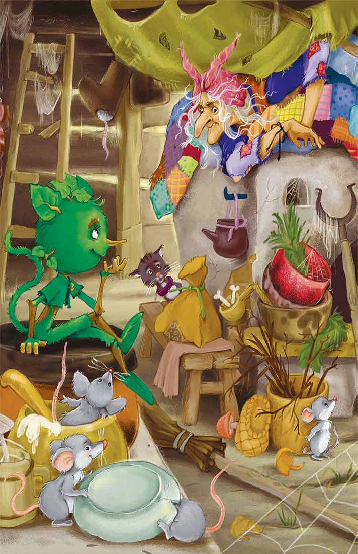 – Незваные гости глодают кости, – ворчит Яга на Лешика. – А у меня и от гостей одни косточки остаются. Ну, чего пожаловал?