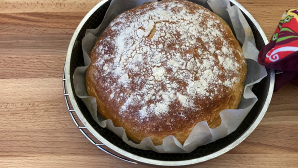 6. Готовый хлеб достаём из духовки, укутываем в полотенце и оставляем остужаться.