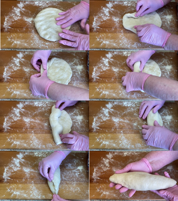 Получаем заготовку будущего хлеба. И всё то же самое проделываем со второй половинкой теста.