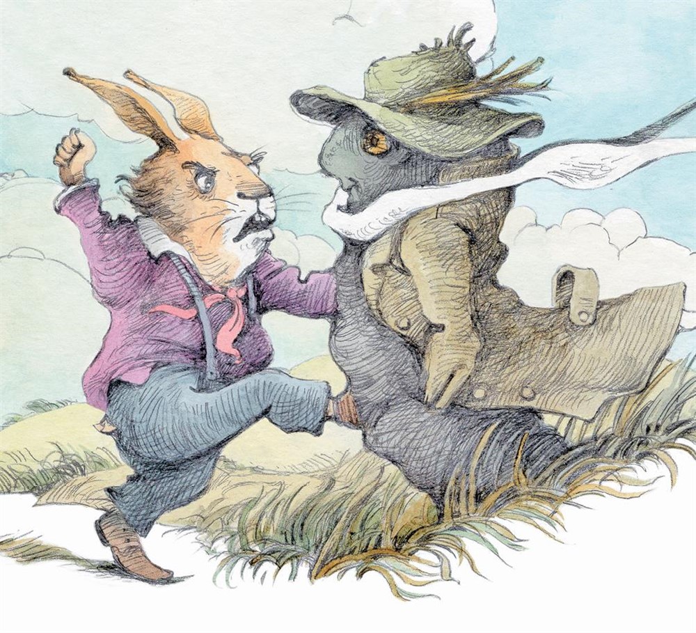 – Отпусти сейчас же, а то ударю! – говорит Братец Кролик.