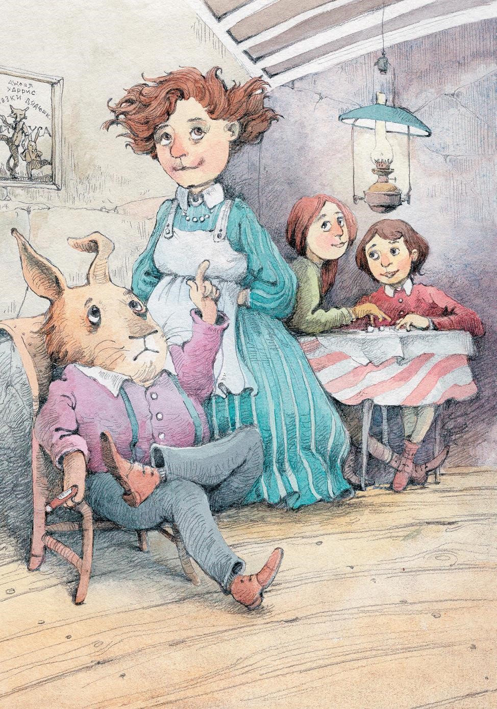 Тогда Кролик живо – детишек за уши и усадил их, а сам с Матушкой Крольчихой – у дверей, ждут Братца Лиса.