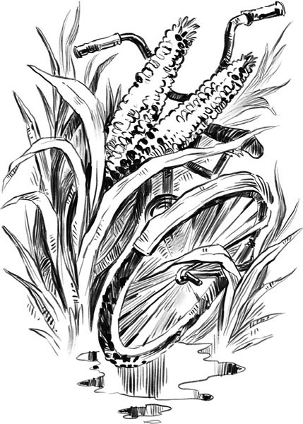 Дорога обратно шла в горку. Брат на багажнике, и так утяжеленном пакетом с кукурузой, казалось, начал перевешивать велосипед. Да он еще бурчал, что я ему не разрешила взять с собой какую-то палку, которую он нашел в леске рядом с полем и с которой никак не желал расставаться.