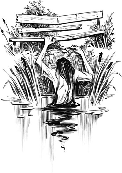 А она, как вода с речки сойдет, приползает к парочкам, которые на лавочке припозднились, или если ребятня вечерком рыбачит. Грустно ей, поди, одной болтаться на дне. Только вот ходить не может, ноги в воде размякли. Так она руками гребет. Кого схватит, так непременно за ногу. И за собой тянет, сильно так. Если не вырвался – сгинул. А если вырвался, то все равно потом ближе к зиме заболеет и помрет.